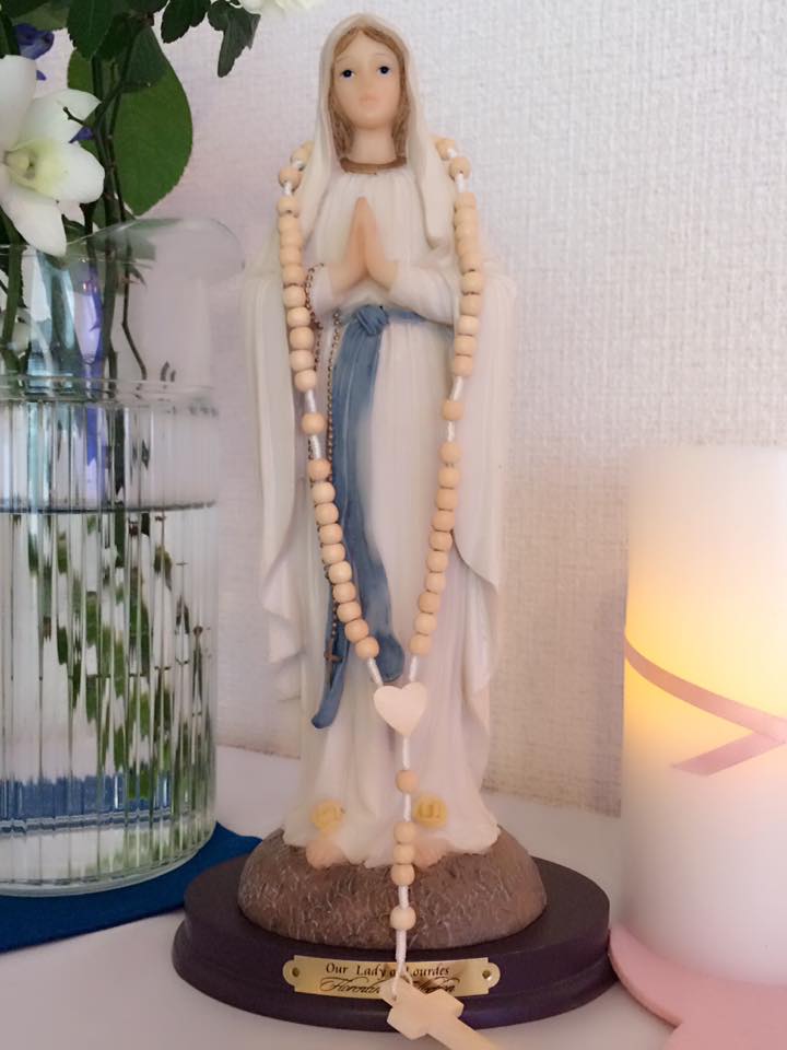 40歳を過ぎたころ、マリア様が好きなことがきっかけとなり、プロテスタントからカトリックに改宗をしました。42歳頃は、人生の最大の困難な時期でした。そして最大の人生の転換期となりました。父が末期の胃がんでホスピスで亡くなるという体験をし、「終末期医療」に出会いました。エリザベス・キューブラー・ロスの著作にみちびかれるように、「スピリチュアルケア」の勉強を始めました。私の人生の師となる、ドイツ人のヴァルデマール・キッペス神父に出会いました。キッペス先生からは、スピリチュアルケア、カウンセリング方法だけではなく、生き方、考え方をたくさん教えていただきました。20代から続けていた教員の仕事をやめ、カウンセラーになることをめざして、勉強と仕事に数年間を費やしました。個人的な生き方も大きな変化を迎えた時間でした。社会人学生として南山大学の心理人間学科に在籍し、学ぶことの楽しさも体験しました。